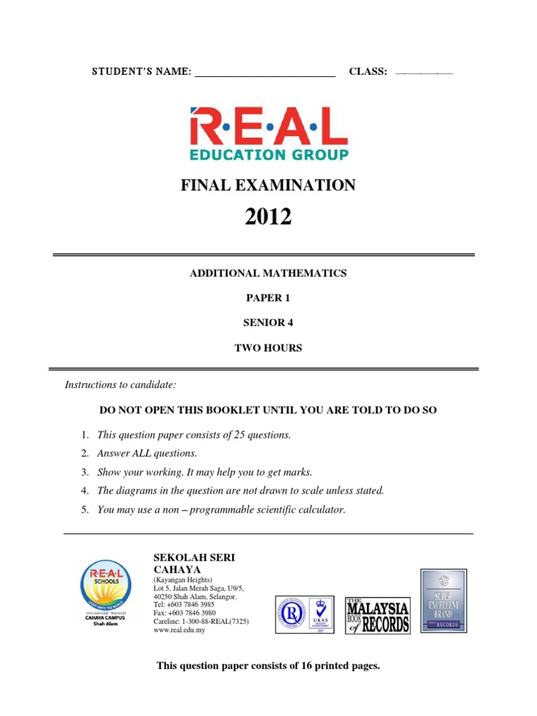 Contoh Soalan Add Math Tingkatan 4 Paper 1 By Da_Kyla35 01 Jun, 2022 Post a Comment Koleksi Soalan Addmath Kertas1 Add Maths Form 4 Paper 1 2012 2 Pdf Quadratic Equation Space Add Maths Form 4 Paper 1 2012 2 Pdf Quadratic Equation Space Pin On Koleksi No 4 Spm 2008 Paper 1 Additional Mathematics Avi Otosection Share No comments for "Contoh Soalan Add Math Tingkatan 4 Paper 1"